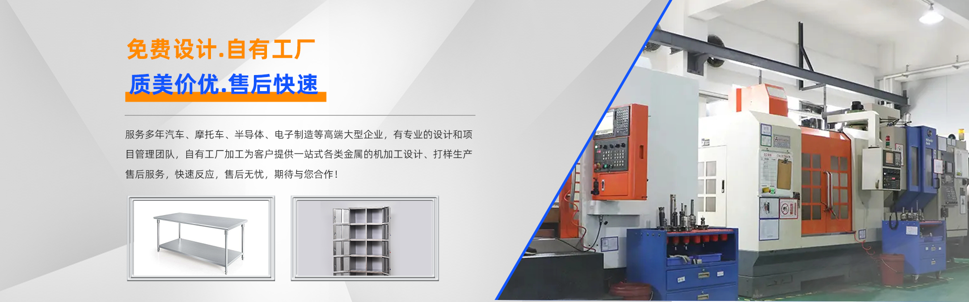 重慶令越羽機(jī)械有限公司成立于2016年,公司位于重慶市北碚區(qū)蔡家崗產(chǎn)業(yè)園,地理位置優(yōu)越,我公司集技術(shù)研發(fā)、生產(chǎn)制造、銷售、售后服務(wù)于一體,有獨(dú)立的金屬加工工廠、各類金屬的表面噴塑生產(chǎn)流水線、 不銹鋼加工及鋼質(zhì)、鋁質(zhì)精益管、鋁型材加工組裝車間,為客戶提供全方位立體的服務(wù)。